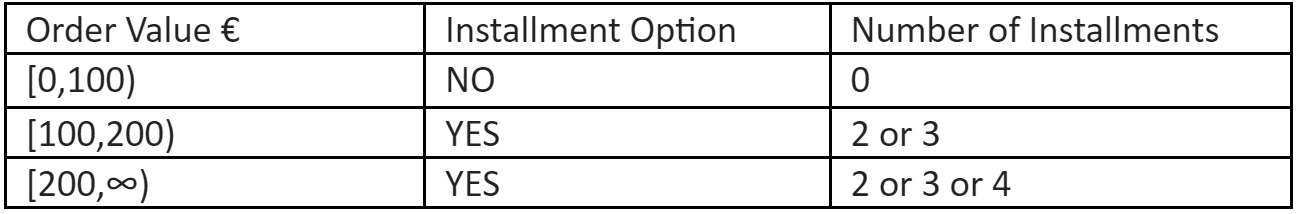 2. Payment in instalments for all credit cards (MasterCard, Visa, Visa Debit, Maestro)